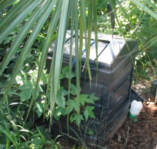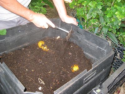 Compost bin is part of the organic garden     Tips: Occasionally turn soil so as to air rate and move worms around.