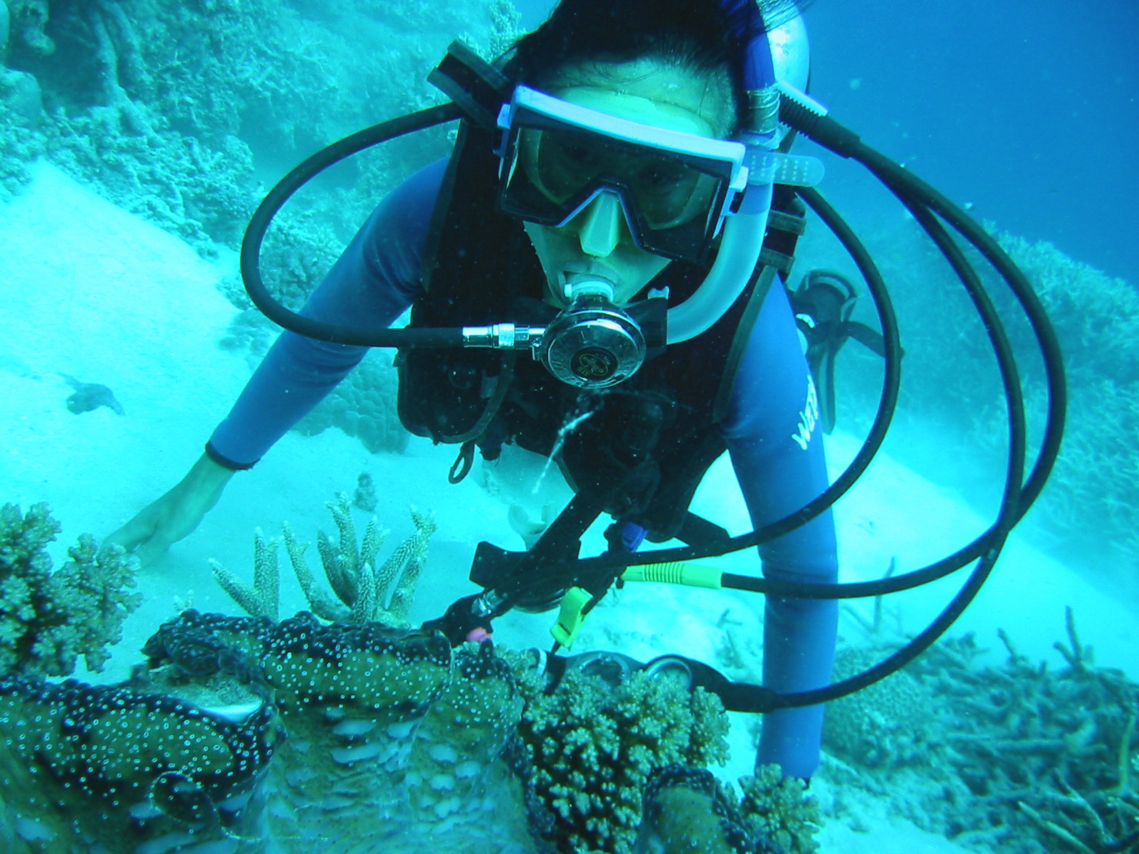 Checking out giant clam