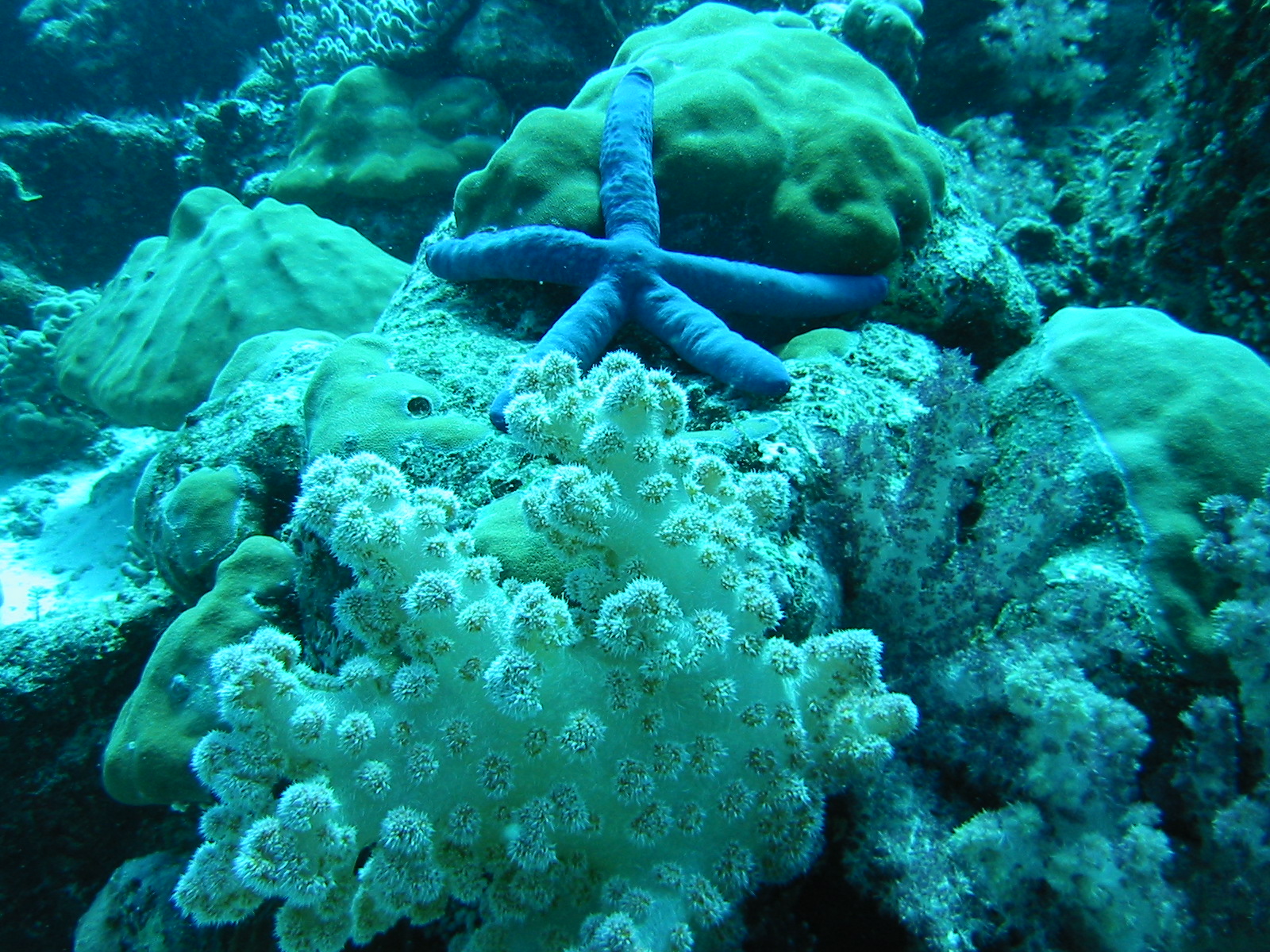 Palau, blue star and soft coral;